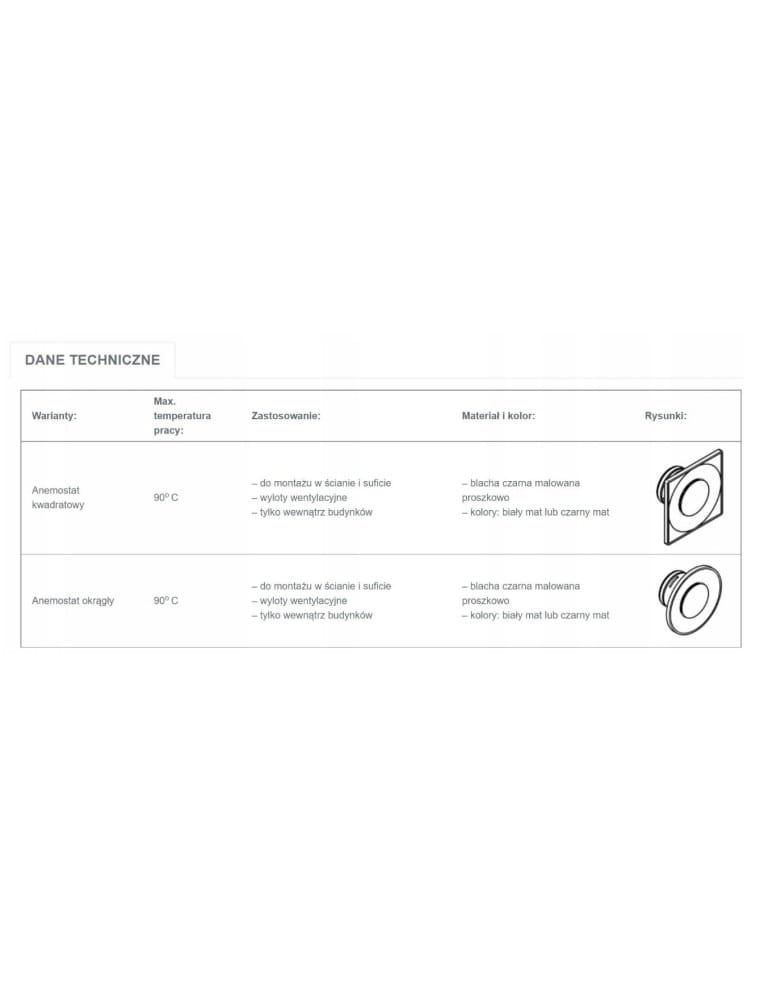 - Typ: Anemostat okrągły