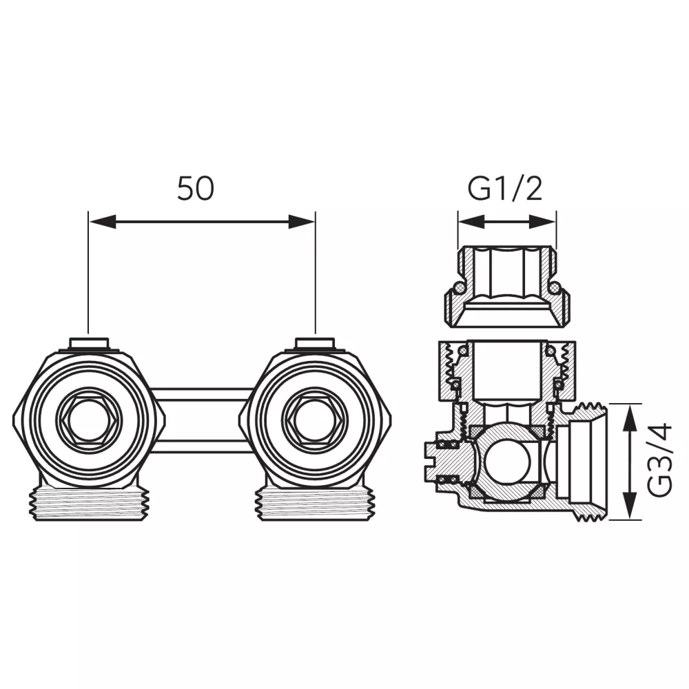 Zestaw termostatyczny kątowy do grzejników dolnozasilanych