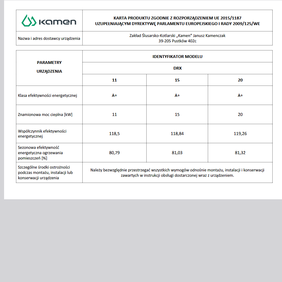 - kocioł Kamen DRX 15 kW