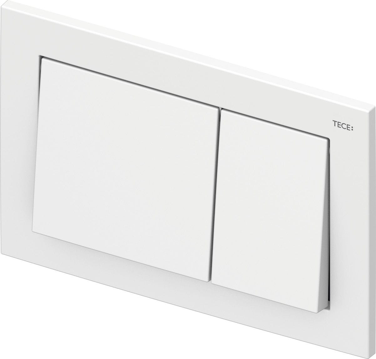 Przycisk spłukujący do WC TECEbase z tworzywa, mozliwość spłukiwania dwoma ilościami wody. Uruchamiany z przodu lub od góry, w komplecie z popychaczami i elementami montażowymi.