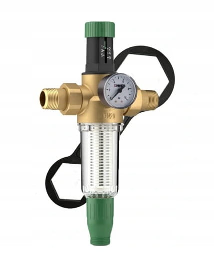 Manometr pokazuje ciśnienie wody w instalacji i może informować o stopniu zabrudzenia siateczki filtrującej (spadek ciśnienia wody w przypadku dużego zanieczyszczenia filtra).