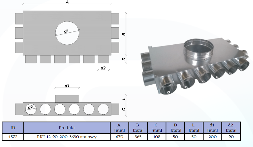 ROZDZIELACZ KĄTOWY JEDNORZĘDOWY 12/90/200 3+6+3