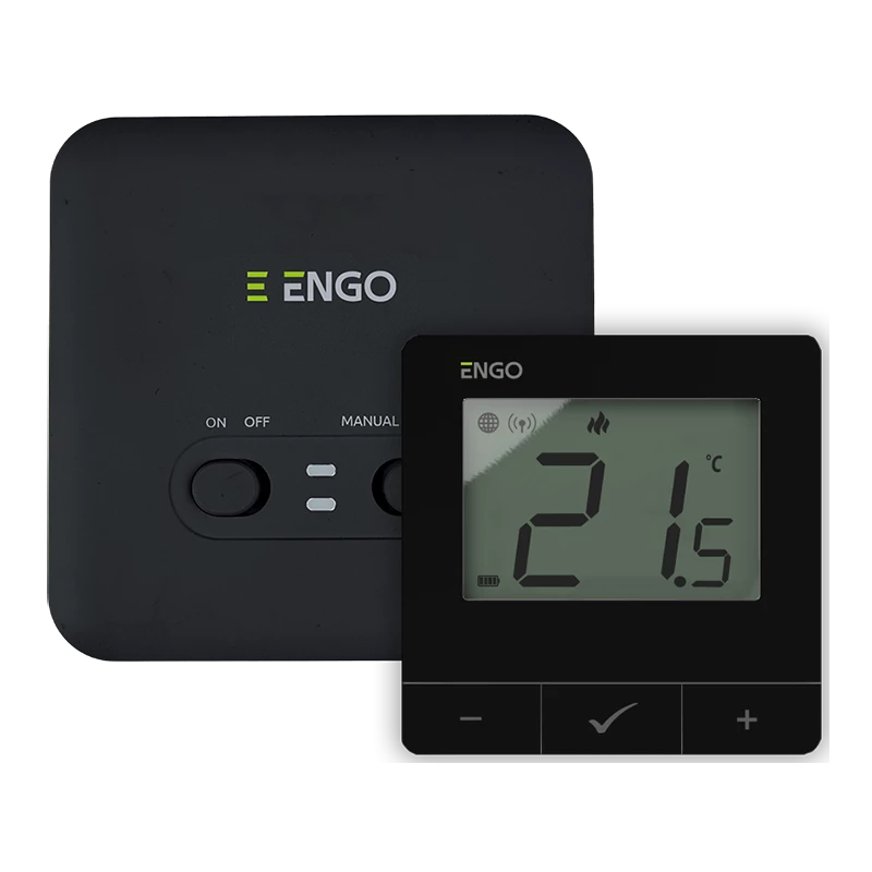 Bezprzewodowy zestaw służący do sterowania standardowymi urządzeniami grzewczymi (np. kotłami gazowymi). Cechuje go: prostota wykonania, intuicyjna obsługa z poziomu klawiszy oraz duży i czytelny wyświetlacz. Wbudowany moduł Wi-Fi umożliwia łatwą i szybką konfigurację urządzenia w aplikacji mobilnej ENGO Smart. Regulator może być udostępniany wielu użytkownikom, ma funkcję tworzenia harmonogramów oraz blokadę PIN. Fabrycznie sparowany i przygotowany do pracy.