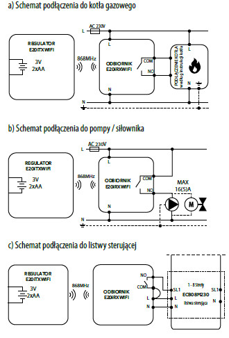 | Sygnał wyjściowy odbiornika | COM / NO (beznapięciowa) |