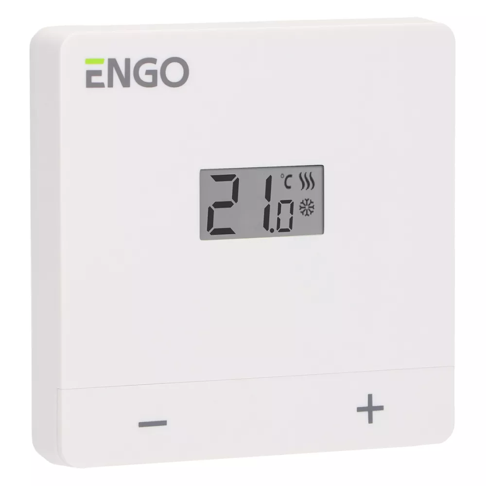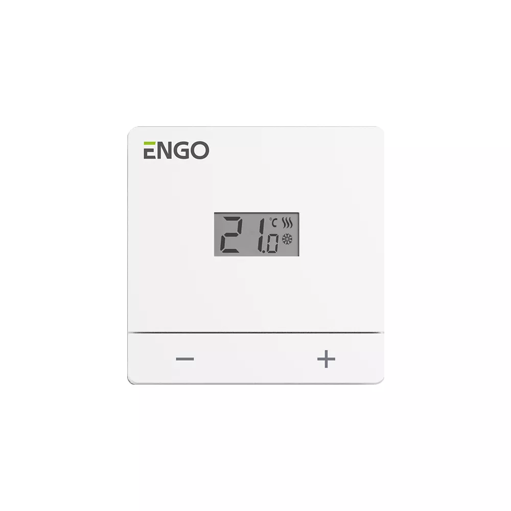 Przewodowy, natynkowy regulator temperatury, bateryjny, biały ENGO