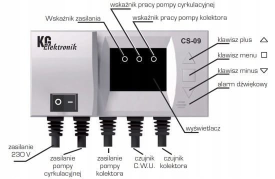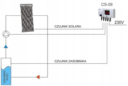 Sterownik CS-09 jest przeznaczony do sterowania pompą kolektora słonecznego oraz cyrkulacyjną.