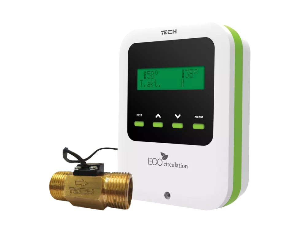 uruchamia pompę, przez co nie generuje strat cieplnych na instalacji CWU. Oszczędza energię, wodę i urządzenie pracujące w układzie (np. pompę cyrkulacyjną). Ponowna
