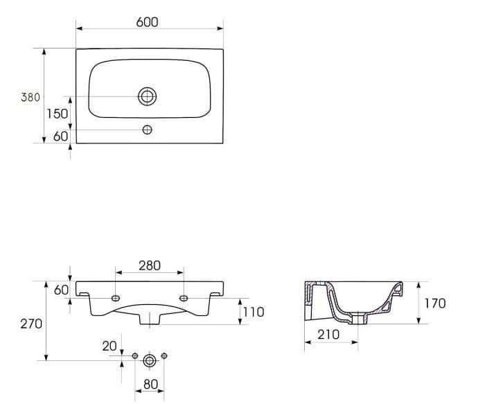 Umywalka meblowa Moduo Slim 60 cm ma zmniejszoną do 38 cm głębokość. Dzięki temu może być zamontowana w miejscach, gdzie nie można zainstalować umywalki o tradycyjnej głębokości. Posiada otwór na armaturę i otwór przelewowy. Przeznaczona jest do montażu z szafką Moduo Slim 60 cm. Ma też możliwość instalacji bezpośrednio do ściany.