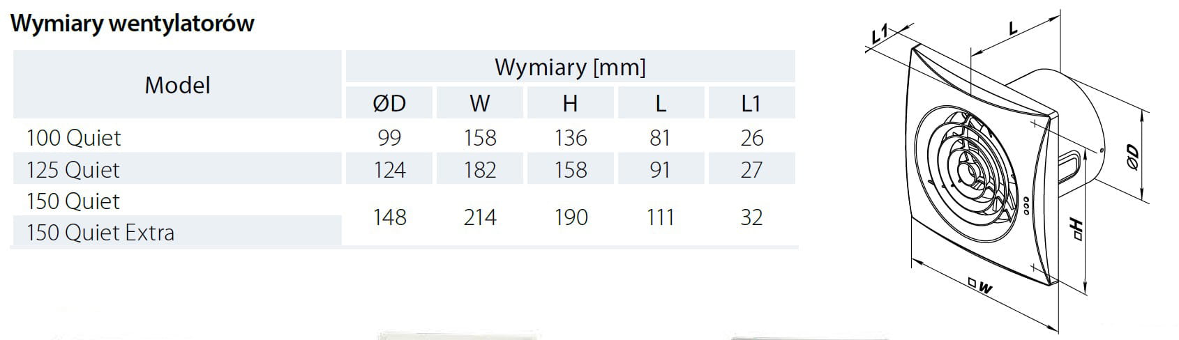 Wentylator osiowy VENTS QUIET, fi 100 mm, biały