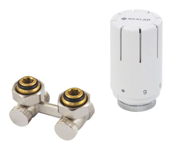 Prosty zestaw grzejnikowy to propozycja dedykowana użytkownikom ceniącym funkcjonalność, trwałość oraz nowoczesny design. Produkt przeznaczony jest do grzejników bocznozasilanych z przyłączami 1/2"x1/2". Dzięki zastosowaniu białej głowicy termostatycznej SKALAR mini, zestaw doskonale komponuje się z różnorodnymi aranżacjami wnętrz.