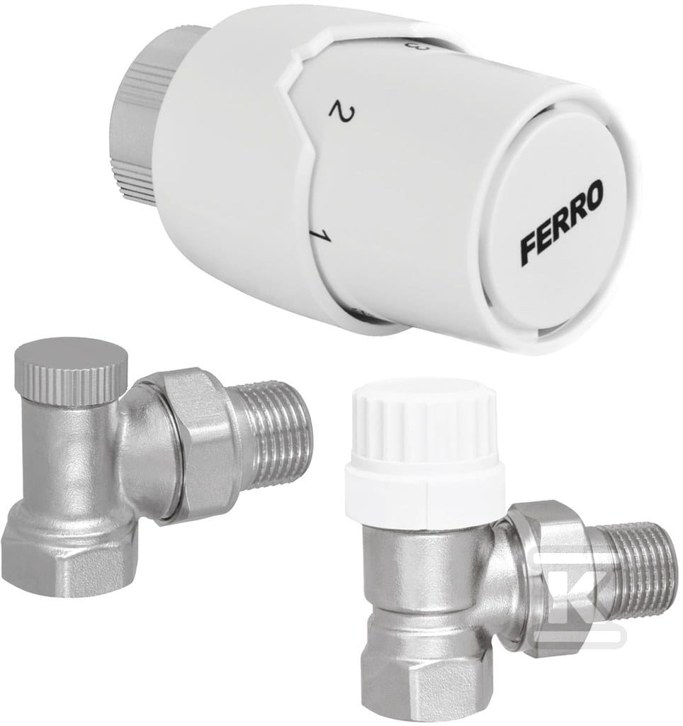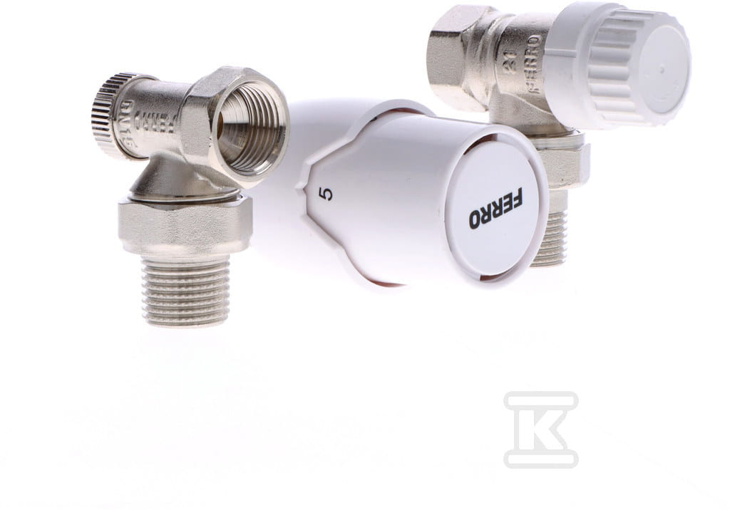 Zestaw termostatyczny kątowy z głowicą GT20 i zaworem powrotnym